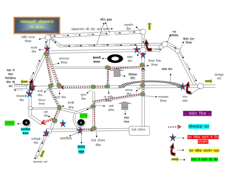 *: प्रेस विज्ञप्ति :**शोभायात्रा रूट चार्ट* :- नटवर स्कूल प्रांगण से प्रारंभ होकर गांधी प्रतिमा तिराहा, एमजी रोड, रामनिवास टाकिज...