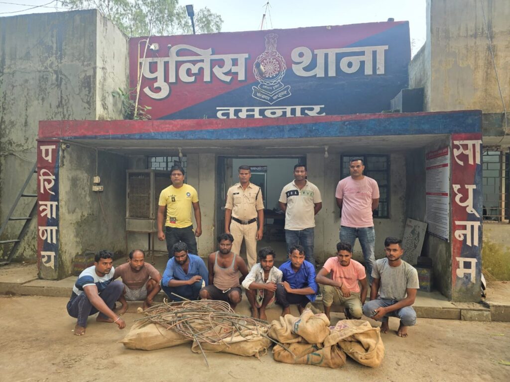 *13 अक्टूबर, रायगढ़* । पुलिस अधीक्षक श्री दिव्यांग कुमार पटेल के दिशा-निर्देशन और एडिशनल एसपी आकाश मरकाम के मार्गदर्शन में, डीएसपी साइबर सेल श्री अभिनव उपाध्याय के सुपरविजन के तहत तमनार थाने की टीम ने चोरी और लूट के मामलों में बड़ी सफलता हासिल की है। थाना प्रभारी श्री आशीर्वाद राहटगांवकर के नेतृत्व में तमनार थाना पुलिस टीम ने आठ आरोपियों को गिरफ्तार किया, जो रेलवे लाइन के निर्माण कार्य से जुड़े तारों की चोरी में काफी समय से संलिप्त थे।