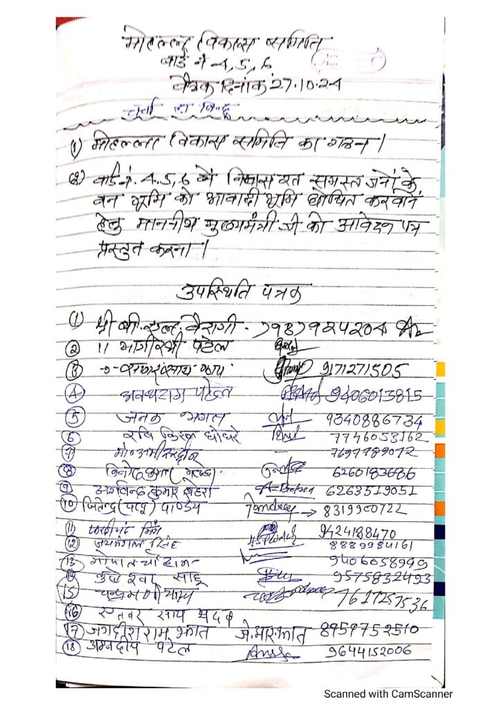 बैठक में मोहल्ला विकास समिति वार्ड क्रमांक 04 / 05 एवं 06 का गठन