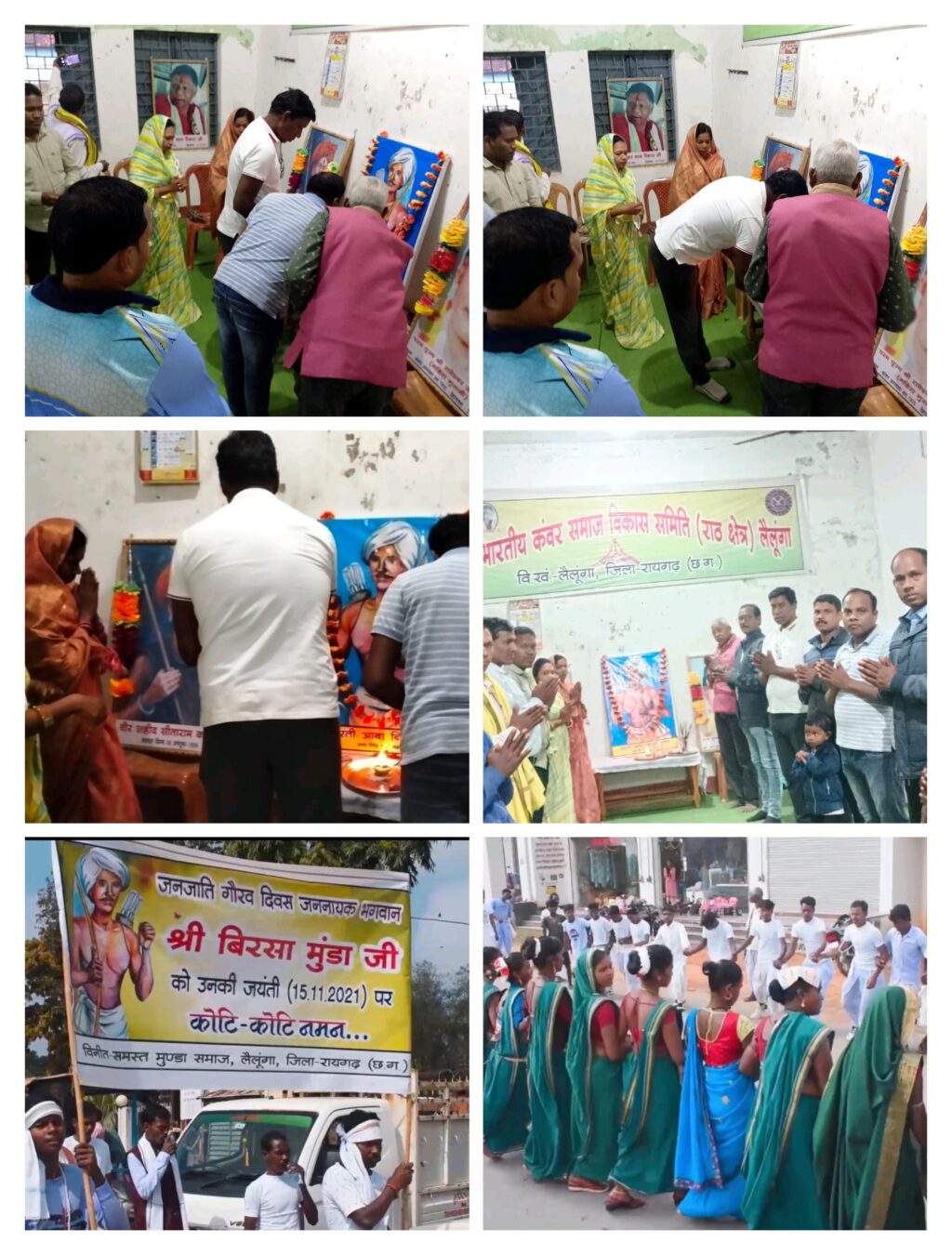 नगर में बिरसा मुंडा जयंती के अवसर पर शानदार आयोजन मुंडा समाज लैलूंगा के द्वारा हर वर्ष की भांति इस वर्ष भी किया गया। नगर में भव्य शोभायात्रा निकाली गयी एवं नगर भ्रमण के पश्चात कार्यक्रम स्थल पर भव्य सुसज्जित बिरसा मुंडा की तस्वीर पर पुष्पांजलि अर्पित की गयी।