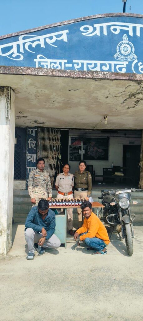 *20 नवंबर, रायगढ़*। एसपी श्री दिव्यांग कुमार पटेल के मार्गदर्शन पर रायगढ़ जिले में नशे के कारोबार पर कड़ी चोट करते हुए लैलूंगा पुलिस ने खम्हार पुलिया पर नाकेबंदी कर 70 बोतल नशीली ओनेरेक्स (ONEREX) सिरप के साथ दो तस्करों को गिरफ्तार किया है। यह सिरप नशे के तौर पर इस्तेमाल हो रही थी, और आरोपी इसे अवैध बिक्री के लिए तस्करी कर रहे थे। पुलिस की इस कार्रवाई से नशे के अवैध नेटवर्क को बड़ा झटका लगा है।