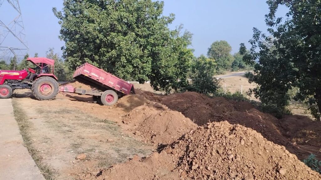 आपको बतादे की रसूखदार द्वारा आनन फानन में जमीन का समतलीकरण कार्य प्रारंभ कर दिया गया था जिस जगह समतलीकरण किया जा रहा था वही बगल में धरमजयगढ़ रेंज के लक्ष्मीपुर की 353 पीएफ नारंगी वन है जिसमे वन विभाग द्वारा सागौन का प्लांटेशन किया गया था उस जमीन में भी मुरूम गिराया जा रहा था। जिसकी सूचना होने पर वन विभाग द्वारा मौके पर जाकर कार्य को रुकवाया गया।