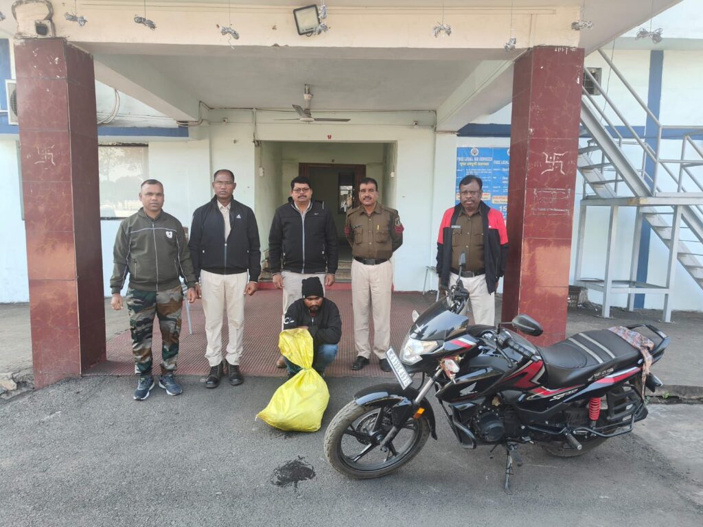 थाना प्रभारी निरीक्षक राकेश मिश्रा को सूचना मिली थी कि एक व्यक्ति घरघोड़ा की ओर से मोटरसाइकिल में अवैध महुआ शराब लेकर आ रहा है। पुलिस टीम ने सामारूमा के बजरंगबली मंदिर के पास संदिग्ध मोटरसाइकिल (क्रमांक CG13BC 4975) का इंतजार किया। मोटरसाइकिल के पहुंचते ही उसे रोककर तलाशी ली गई, मोटर सायकल चालक आरोपी संतोष कुमार राम (32 वर्ष), निवासी मड़वारानी, जिला कोरबा, वर्तमान में बीएस प्लांट, तराईमाल में रह रहा था।जिसमें 30 पाउच (500 मि.ली. प्रत्येक) में कुल 15 लीटर महुआ शराब बरामद हुई। जब्त शराब की कीमत करीब 1,500 रुपये है। आरोपी ने अवैध शराब की बिक्री के लिए परिवहन करने की बात स्वीकार की। पुलिस ने मौके पर गवाहों के समक्ष शराब और मोटरसाइकिल को जब्त कर लिया। आरोपी पर थाना पूंजीपथरा में आबकारी अधिनियम की धारा 34(2) और 59(क) के तहत मामला दर्ज किया गया है।