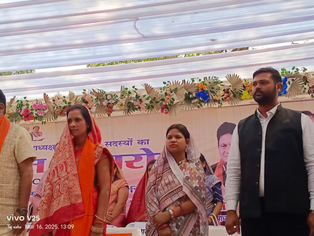 शपथ ग्रहण समारोह के दौरान उपस्थित जनसमूह ने नव निर्वाचित पदाधिकारियों को बधाई देते हुए क्षेत्र के विकास में सहयोग का संकल्प लिया।