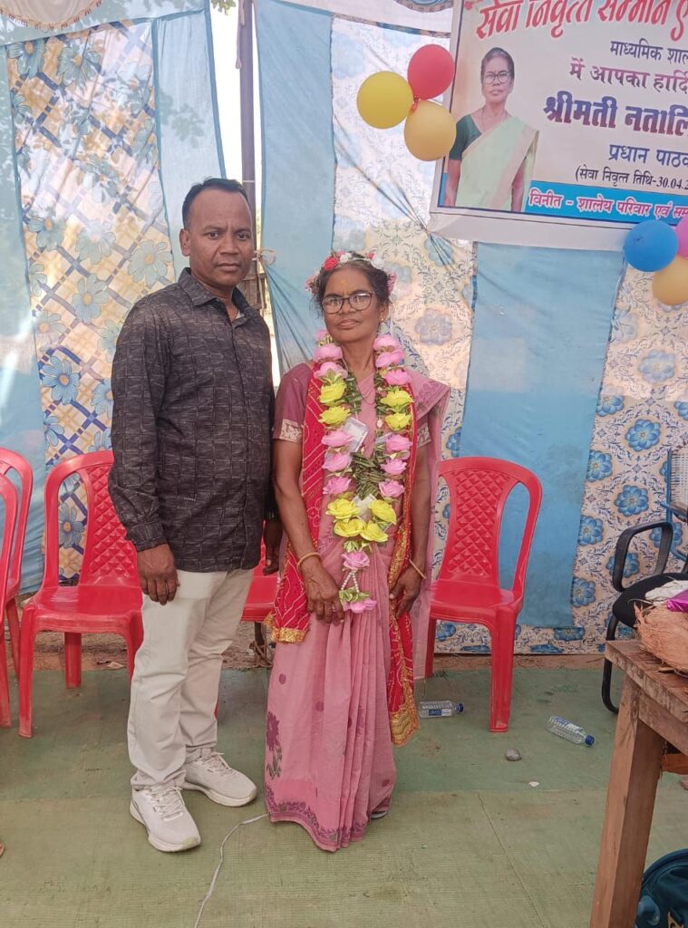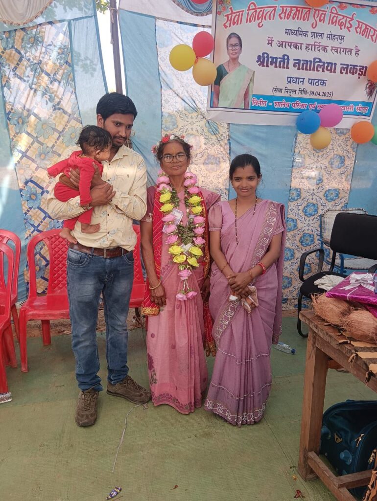 जिला रायगढ़ के विकास खण्ड लैलूंगा क्षेत्र के मा. शा. सोहनपुर में बच्चों के बीच शिक्षा दीक्षा को लेकर बहुचर्चित प्रधान पाठक श्रीमती नतालिया लकड़ा मैडम जी 30 अप्रैल 2025 को शिक्षा विभाग में 38 वर्ष सेवा उपरांत सेवा निवृत्त हो गए है l लकड़ा मैडम जी शिक्षकीय जीवन में प्रथम नियुक्ति शा. प्रा. शा. फुटहामुड़ा में दिनांक 24-04-1987 को हुआ l सन 1987 से 1990 तक तीन वर्ष तक अपनी सेवाएं दी l तत्पश्चात 1990 से 2009 तक सहा. शिक्षक के रूप में दस वर्षों तक मा. शा. कुंजारा में अपनी लंबी सेवाएं दी l तत्पश्चात मा. शा. कुंजारा में दिनांक 18-02-2009 को उच्च वर्ग शिक्षक के पद पर पदोन्नति मिली l दिनांक 29-12-2010 तक लगभग दस महीने उच्च वर्ग शिक्षक के रूप में कार्यरत रहते हुए दिनांक 29-12-2010 को प्रधान पाठक के पद पर पदोन्नति प्राप्त हुआ तथा दिनांक 29-01-2011 को आपने मा. शा. सोहनपुर में प्रधान पाठक के पद पर कार्यभार ग्रहण किया l तब से लेकर आज दिनांक 30-04-2025 तक कुल पंद्रह वर्षों की सबसे लंबी सेवाएं मा. शा. सोहनपुर में प्रधान पाठक के रूप में देते हुए अपनी सेवाकाल अधिवार्षिकी सफलता पूर्वक पूर्ण किया है l आप सहज, सरल,कुशल एवं विनम्र स्वभाव के धनी है l आपने अपनी पुरे जीवनकाल में वह उत्कृष्ट कार्य कर दिखाए है जिनमें तीन बार राष्ट्रीय स्तर के हॉकी खिलाड़ी, एक बार राष्ट्रीय स्तर के कबड्डी खिलाड़ी एवं अनेक बार के एथलेटिक्स खिलाड़ी के प्रति भावान खिलाड़ी रह चुके है l आप पी. टी. आई. बनना चाहते थे लेकिन ईश्वर की मर्जी कुछ और क्षेत्र में थीl