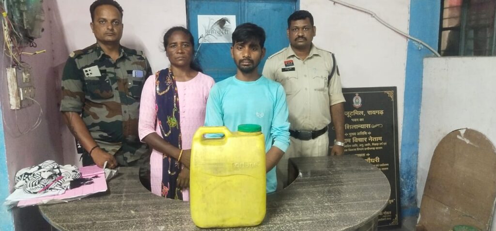 *19 मई, 2025 रायगढ़* । आज दिनांक 19 मई 2025 को थाना जूटमिल पुलिस ने ग्राम बनसिया में दबिश देकर अवैध रूप से महुआ शराब रखने और विक्रय करने वाले एक युवक को गिरफ्तार किया है। कार्यवाही में पुलिस ने आरोपी के घर से 10 लीटर हाथ भट्ठी महुआ शराब जब्त की है। आरोपी के खिलाफ आबकारी अधिनियम की धाराओं के तहत मामला दर्ज किया गया है।