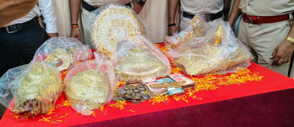 *रायगढ़ 23 जुलाई 2025* – रायगढ़ के प्रतिष्ठित श्री श्याम मंदिर से धार्मिक आभूषण और नकदी की हुई सनसनीखेज चोरी की गुत्थी को रायगढ़ पुलिस ने सुलझा लिया है। इस मामले में सीमावर्ती ओड़िशा राज्य और पडोसी जिले सारंगढ़-बिलाईगढ़ के छह आरोपियों की गिरफ्तारी के साथ करीब 27 लाख रुपये मूल्य की चोरी गई संपत्ति की बरामदगी पुलिस के लिए एक बड़ी उपलब्धि है।