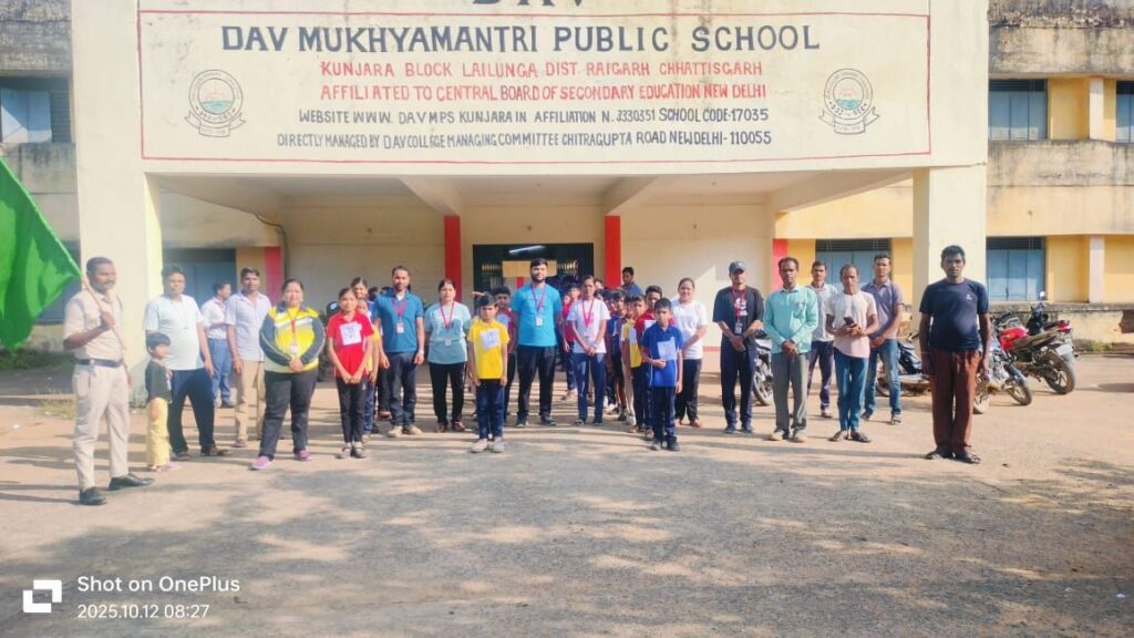 डीएवी मुख्यमंत्री पब्लिक स्कूल कुंजारा मे *रन फॉर डीएवी* कार्यक्रम का आयोजन बड़े उत्साह और जोश के साथ किया गया। कार्यक्रम के माध्यम से विद्यार्थियों के बीच स्वास्थ्य जागरूकता, टीम भावना और अनुशासन के महत्व को बताया गया। कार्यक्रम का शुभारंभ पुलिस आरक्षक संपत निषाद जी ने हरी झंडी दिखाकर किया। विद्यार्थियों, शिक्षकों एवं अभिभावकों ने स्वस्थ शरीर में ही स्वस्थ मन का संदेश देते हुए दौड़ में बढ़-चढ़कर हिस्सा लिया। यह दौड़ डीएवी पब्लिक स्कूल परिसर से शुरू होकर शासकीय संत गहिरा गुरु रामेश्वर महाविद्यालय कुंजारा चौक तक आयोजित की गई। कार्यक्रम के दौरान फिट इंडिया – हिट इंडिया के नारे लगातार गूंजते रहे, जिससे माहौल उत्साहपूर्ण बना रहा।इस दौरान लैलूँगा पुलिस प्रशासन की एक सुरक्षा इकाई और अभिभावकों ने भी सराहनीय भूमिका निभाई। विद्यालय के प्राचार्य सुश्री अर्चना चौधरी जी ने विद्यार्थियों को संबोधित करते हुए कहा कि ऐसे आयोजन न केवल शारीरिक स्वास्थ्य को प्रोत्साहित करते हैं बल्कि आत्मविश्वास, एकता और प्रतिस्पर्धा की भावना भी विकसित करते हैं। उन्होंने शिक्षकों को भी स्वस्थ रहने के लिए प्रेरित किया।