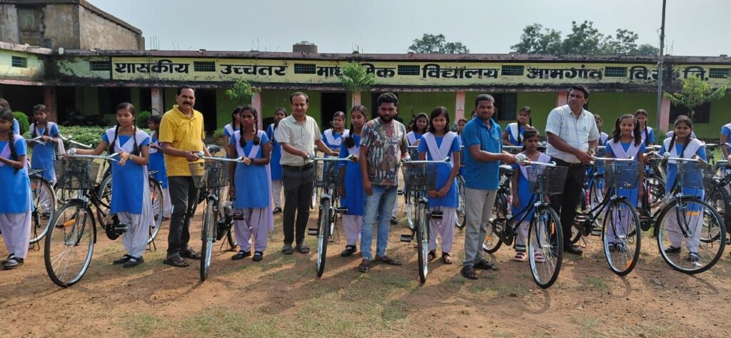 रायगढ़, 16 अक्टूबर 2025/ छत्तीसगढ़ शासन की महत्वाकांक्षी निःशुल्क सरस्वती साइकिल योजना के अंतर्गत शासकीय उच्चतर माध्यमिक विद्यालय, जामगांव में अध्ययनरत कक्षा 9वीं की 35 छात्राओं को निःशुल्क साइकिल प्रदान की गई। इस योजना का उद्देश्य छात्राओं को विद्यालय आने-जाने में सहूलियत प्रदान कर उनकी शिक्षा को प्रोत्साहित करना है। छात्राओं को जब साइकिल प्रदान की गई, तो उनके चेहरों पर उत्साह और आत्मविश्वास साफ झलक रहा था। कई छात्राओं ने कहा कि अब उन्हें स्कूल आने-जाने में समय की बचत होगी और नियमित रूप से समय पर स्कूल पहुंच सकेंगी।