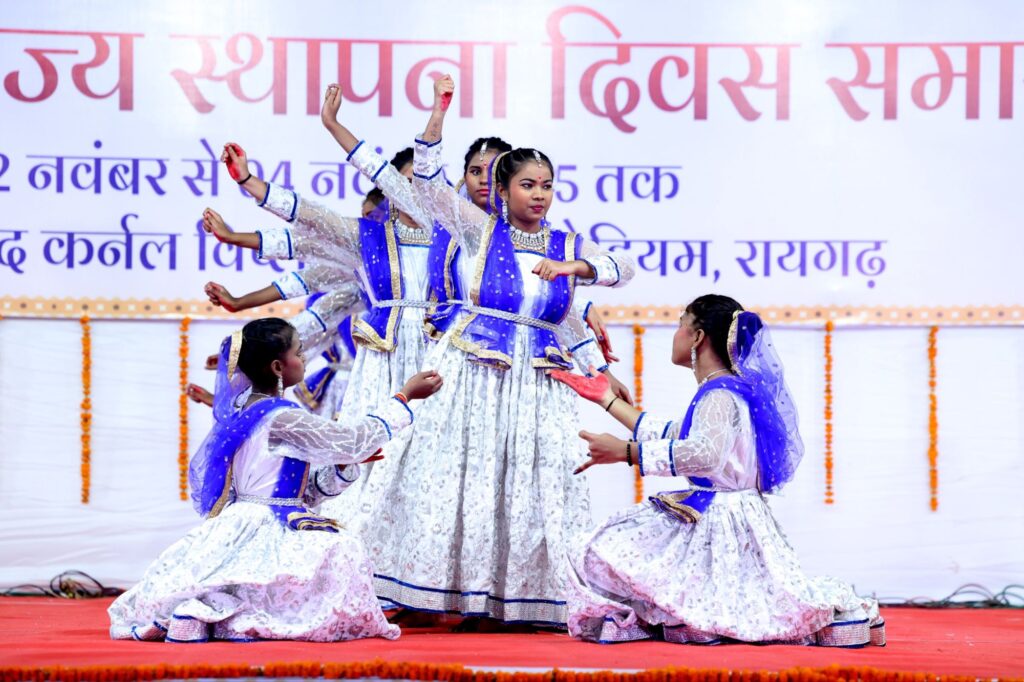 रायगढ़, 3 नवम्बर 2025/ छत्तीसगढ़ राज्य स्थापना दिवस के रजत जयंती वर्ष के अवसर पर जिला मुख्यालय स्थित शहीद कर्नल विप्लव त्रिपाठी स्टेडियम में आयोजित जिला स्तरीय राज्योत्सव कार्यक्रम के दूसरे दिन विविधतापूर्ण सांस्कृतिक प्रस्तुतियों ने समूचे परिसर को लोक संस्कृति और उत्साह के रंगों से भर दिया। स्कूली छात्र-छात्राओं द्वारा प्रस्तुत लोकनृत्य, नाट्य और संगीत कार्यक्रमों ने दर्शकों को मंत्रमुग्ध कर दिया।