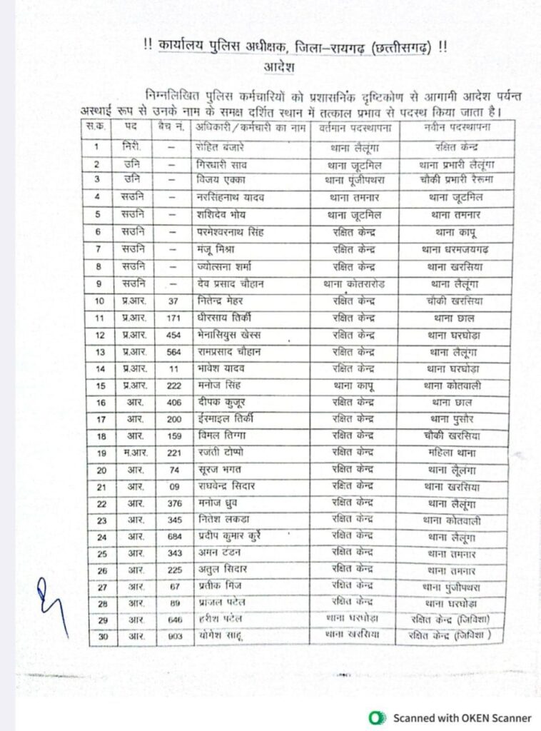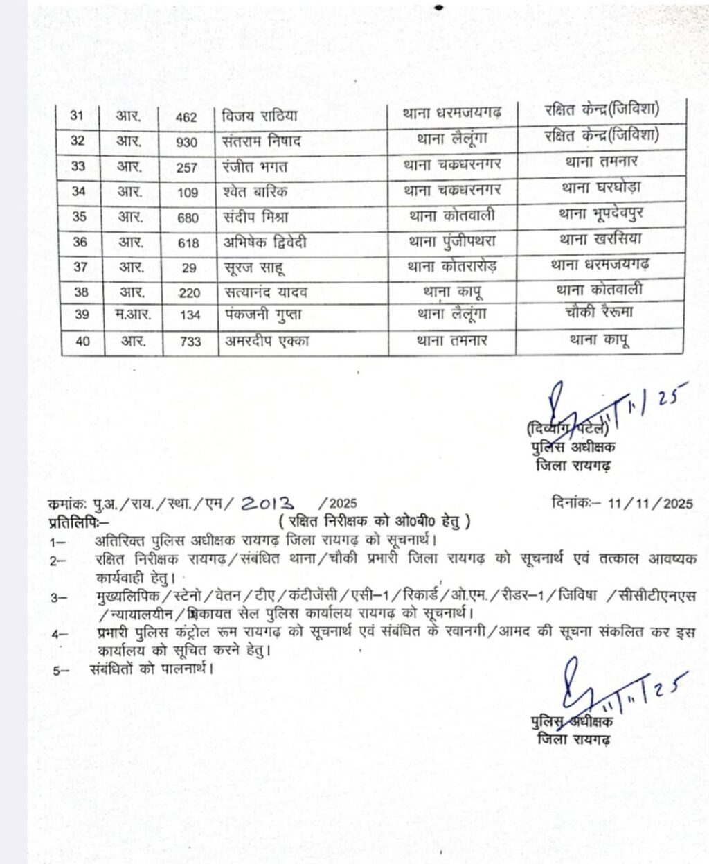 рдерд╛рдирд╛ рд▓реИрд▓реВрдВрдЧрд╛ рдореЗрдВ рдмрдбрд╝рд╛ рдлреЗрд░рдмрджрд▓ тАФ рдЧрд┐рд░рдзрд╛рд░реА рд╕рд╛рд╡ рдмрдиреЗ рдирдП рдерд╛рдирд╛ рдкреНрд░рднрд╛рд░реА, рд░реЛрд╣рд┐рдд рдмрдВрдЬрд╛рд░реЗ рдХрд╛ рд╣реБрдЖ рддрдмрд╛рджрд▓рд╛ рд░рд╛рдпрдЧрдврд╝ рд░рдХреНрд╖рд┐рдд рдХреЗрдВрджреНрд░!