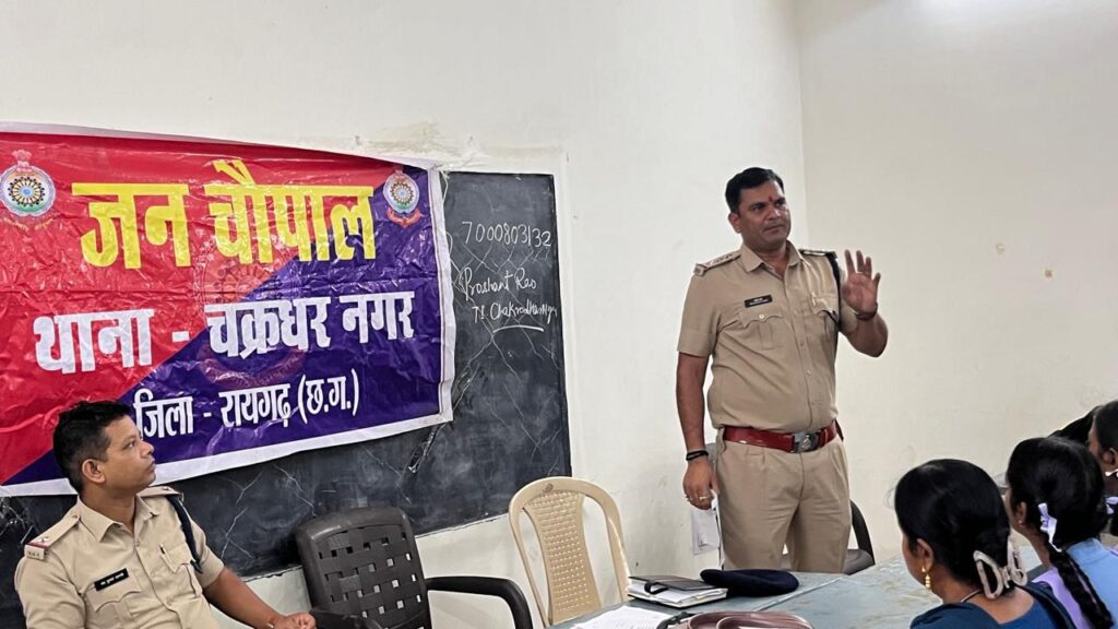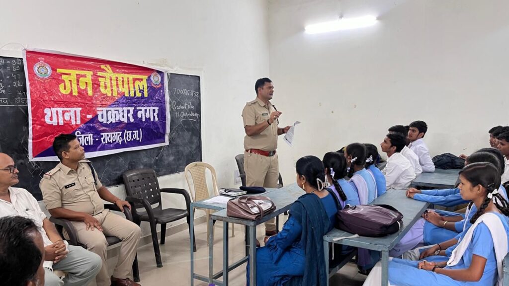 *29 जुलाई रायगढ़* । पुलिस अधीक्षक श्री दिव्यांग कुमार पटेल के दिशा निर्देशन पर आज दिनांक 29/07/2024 को चक्रधरनगर पुलिस द्वारा ग्राम लोइंग के हायर सेकेंडरी स्कूल में जागरूकता कार्यक्रम का आयोजन किया गया जिसमें थाना प्रभारी चक्रधरनगर निरीक्षक प्रशांत राव आहेर द्वारा छात्र-छात्राओं को नवीन कानून के संबंध में संक्षिप्त रूप से जानकारी देकर कानून में बालकों के अधिकारों के बारे में बताया गया ।