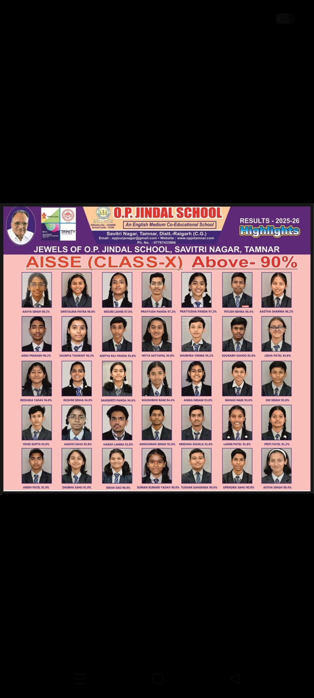 रायगढ़। केंद्रीय माध्यमिक शिक्षा बोर्ड (CBSE) की 10वीं परीक्षा 2026 के घोषित परिणामों में ओपी जिंदल स्कूल, उर्जानगर की होनहार छात्रा आव्या सिंह ने शानदार प्रदर्शन करते हुए न सिर्फ अपने परिवार बल्कि पूरे जिले का नाम रोशन कर दिया है।
