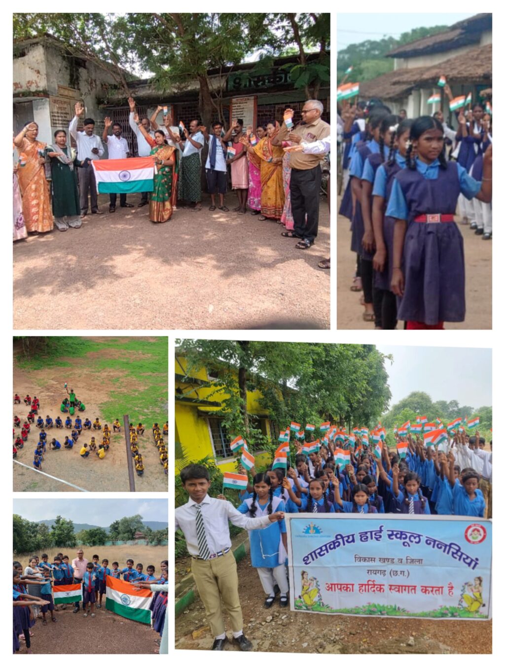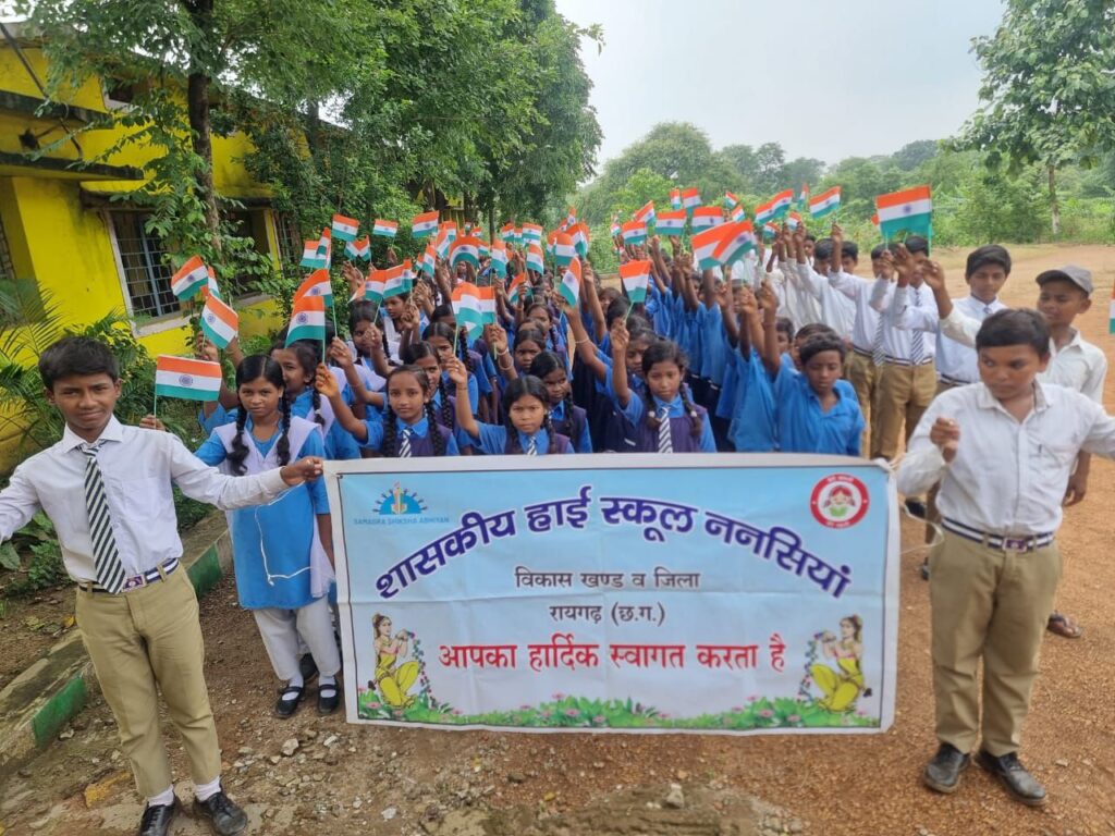 कलेक्टर श्री कार्तिकेया गोयल के निर्देशन एवं सीईओ जिला पंचायत श्री जितेन्द्र यादव के मार्गदर्शन में जिले के सभी शासकीय स्कूलों में तिरंगा रैली एवं तिरंगा शपथ कार्यक्रम का आयोजन किया जा रहा है। साथ ही तिरंगा का सम्मान घर-घर और आमजन तक पहुंचे इसके लिये स्कूलों में साईकल रैली और तिरंगा रैली का भी आयोजन किया गया। लैलंूगा विकासखण्ड के स्वामी आत्मानंद हायर सेकेण्डरी स्कूल लारीपानी के बच्चों द्वारा मनमोहक मानव श्रृंखला के माध्यम से तिरंगा अंकित किया गया। इसी तरह विकासखण्ड रायगढ़ के शासकीय हाईस्कूल ननसिया के विद्यार्थियों ने रैली निकालकर हर घर तिरंगा अभियान जुडऩे एवं तिरंगा के सम्मान हेतु आव्हान किए।