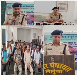 देश मे नये कानून की शुरुवात पर लैलूंगा थाना प्रभारी द्वारा मंगल भवन मे किया गया नवीन कानून क्रियान्वयन उत्सव कार्यक्रम…