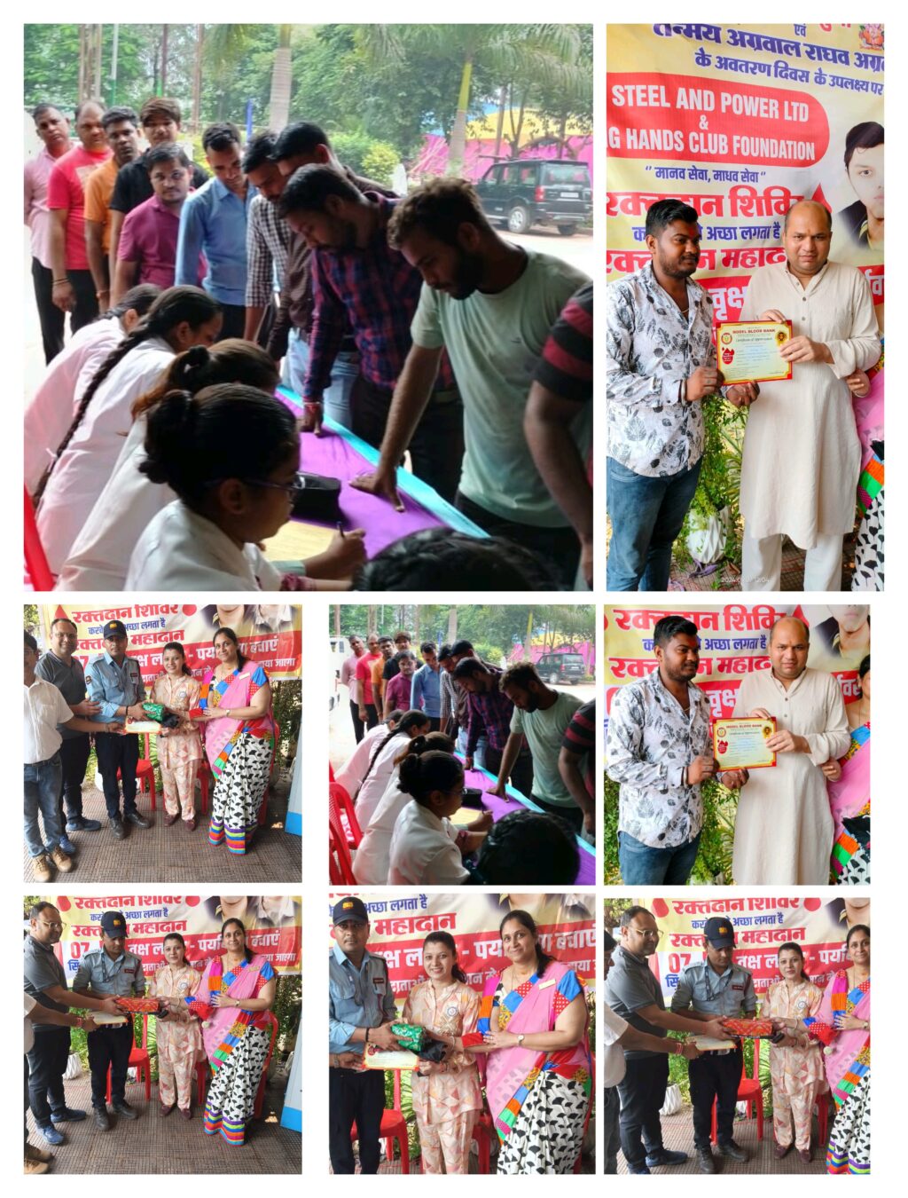 बिलासपुर।हेल्पिंग हैंड्स क्लब फाउंडेशन एक ऐसी संस्था जो निरंतर सामाजिक कार्य से लोगो के दिल में अपनी अलग जगह बनाते जा रही है। दिन प्रतिदिन यह संस्था निस्वार्थ भाव से लोगो की सेवा कर मदद कर आसमान की ओर बढ़ते जा रही है। इसी कड़ी में इन्होंने गणेश चतुर्थी के पवन अवसर पर बप्पा का आगमन मेगा ब्लड कैम्प के साथ किया बिलासपुर पालाघाट स्थित राशि स्टील पावर लिमिटेड प्लांट में 7 सितंबर को मेगा ब्लड डोनेशन कैम्प आयोजित किया गया। जिसमे 105 यूनिट रक्त संग्रहित हुआ। रक्त संग्रहित टीम रायपुर मेकाहारा हॉस्पिटल मॉडल ब्लड बैंक पहुंची थी पालाघाट। राशि स्टील की डायरेक्टर ज्योति अग्रवाल हेल्पिंग हैंड्स क्लब वूमेन विंग की प्रदेश उपाध्यक्ष है इन्होंने बताया की हेल्पिंग हैंड्स क्लब का लक्ष्य मानव सेवा माधव सेवा और हर जरूरतमंद असहाय लोगो तक मदद पहुंचाना है। वही आज के इस मेगा ब्लड कैंप में राशि स्टील के डायरेक्टर रोहित अग्रवाल , ज्योति अग्रवाल सहित हेल्पिंग हैंड्स क्लब के उपाध्यक्ष अमित केडिया , तरुण अग्रवाल महिला विंग कोषाध्यक्ष एकता मलिक सहित अन्य बिलासपुर वालंटियर मौजूद रहे। राशि स्टील की डायरेक्टर एवं समाजसेवी ज्योति अग्रवाल हमेशा ही पर्यावरण संरक्षण छेत्र एवं सामाजिक कार्य में अग्रणी रहती है उनका कहना है की हर किसी को सच्चे मन से अच्छे कर्म करने चाहिए भगवान इसका फल आपको किसी न किसी रूप में जरूर देता है। राशि स्टील के डायरेक्टर रोहित अग्रवाल ने बताया आज उनके दोनो बेटे का जन्मदिन है जन्मदिन की खुशियां इस तरह पावन कार्य करके मनाने में और मन प्रफुल्लित है। हेल्पिंग हैंड्स क्लब के संरक्षक मनोज गोयल , रमेश अग्रवाल ,अध्यक्ष अंकित अग्रवाल सचिव उदित अग्रवाल कोषाध्यक्ष रजत अग्रवाल ने पूरी टीम को इस मेगा सक्सेस कैंप के लिए बधाई दी।
