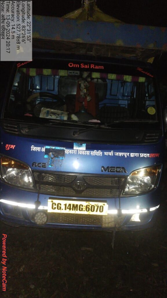 श्री मकर लाल सिदार, उप वनमण्डलाधिकारी, लैलूंगा के निर्देशन में एवं श्री विष्णु साद मरावी, वन परिक्षेत्र अधिकारी, बाकारूमा परिक्षेत्र के अगुवाई में बाकारूमा परिक्षेत्र के कर्मचारियों श्री नरेश सिदार, उप वनक्षेत्रपाल, परिक्षेत्र सहायक साजापाली, भूपेन्द्र नवरंग, वन रक्षक, परिसर रक्षक ससकोबा द्वारा ससकोबा तिलडेगा मोड़ में शाम 05:00 बजे एक वाहन छोटा हाथी नं. CG 14 MG 6070 में वनोपज साल चिरान 59 नग 1.037 घ.मी. अवैध परिवहन करते हुए जप्त किया गया है। जिसे भारतीय वन अधिनियम 1927 की धारा 26 (1) क, छत्तीसगढ़ परिवहन अधिनियम 2001 की धारा 41 नि. (3), नि. 18, छ.ग. वनोपज व्यापार (विनियम) नियम 1969 की धारा 05 (1), छ.ग. वनोपज (व्यापार विनियम) काष्ठ नियम 1973 की धारा 3, 4 के तहत् अपराध होना पाये जाने पर संलिप्त व्यक्ति श्री विदेश राम कुमार चौहान वल्द मन्नत राम चौहान, पता वार्ड क्र. 08 पत्थलगांव, जिला जशपुर (छ.ग.) के नाम से वन अपराध प्रकरण को 19981/07, दिनांक 13.09.2024 जारी किया गया।