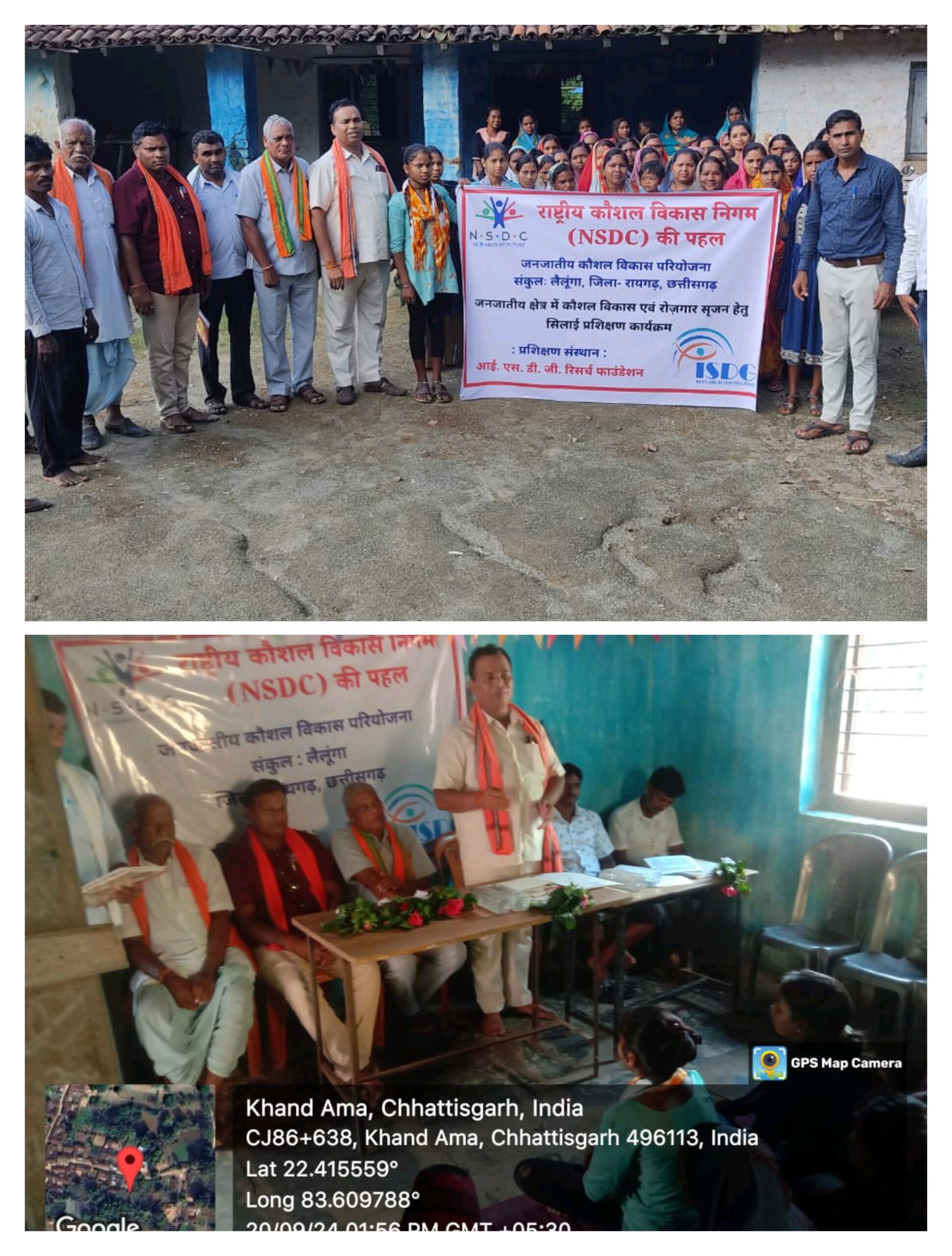 लैलूंगा/राष्ट्रीय कौशल विकास निगम (NSDC) द्वारा प्रायोजित जनजातीय कौशल विकास परियोजना के अंतर्गत दिनांक 20-09-2024 को रायगढ़ ज़िले के लैलूंगा विकासखंड के केंदाटिकरा ग्राम में जनजातीय महिलाओं के कौशल विकास हेतु सिलाई कटाई प्रशिक्षण कार्यक्रम का उद्धघाटन किया गया।